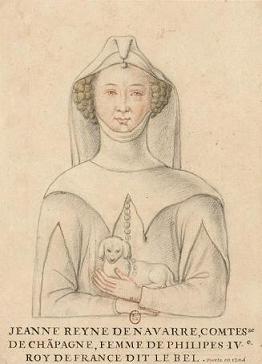 La reina madre, Blanca de Artois, vio tan comprometida la vida y la libertad de su hija, sobre todo por la invasión que Alfonso X (sí, el de las cantigas no sólo se dedicaba a la poesía) ordenó para hacerse con la niña, que ambas tuvieron que huir de Pamplona a uña de caballo y refugiarse en la corte de su primo, el rey Felipe III el Atrevido de Francia, quien por supuesto no tardó en concertar el matrimonio de Juana con su primogénito, Felipe. La más que golosa dote fueron los territorios de Navarra y de Champaña. Eso ocurrió en 1275, y apenas un año más tarde, esa fuga tuvo como consecuencia que el ejército francés entrase también en Navarra con tal poder, que los castellanos se retiraron inmediatamente, dejando a sus aliados del burgo de la Navarrería completamente a merced de los franceses. El poeta Anelier lo contó, y muy bien además.